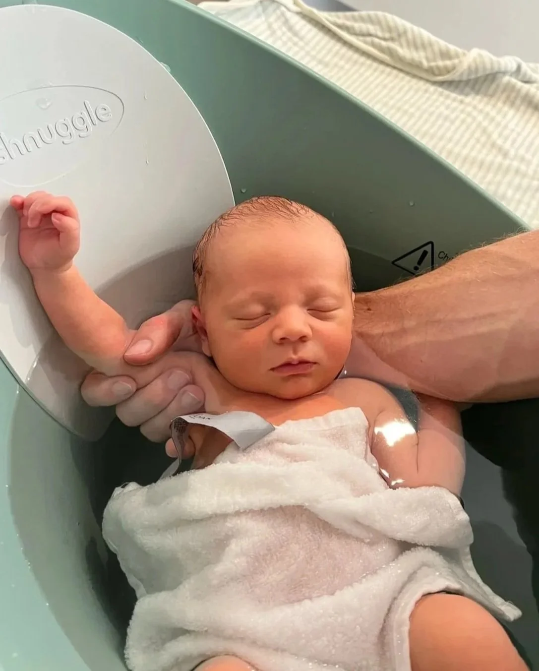 The first bath in the hospital with your baby isn’t always the most calming. I know my experience certainly wasn’t! It is a bit of a box tick exercise for them before you go home, so the timing isn’t always right. Baby is unsettled or hungry, you’re in a daze, still processing everything that’s just happened, and your partner is sweating under the pressure.